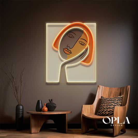"Thinking Girl Face Abstract Art" Neon LED Acrylic Artwork