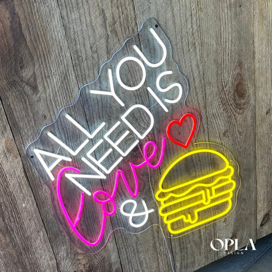 "All You Need Is Love & Burger" Neon maroc - Neon Led au Maroc
