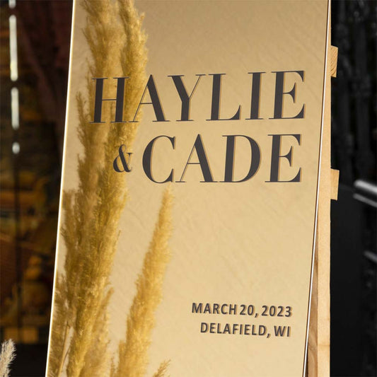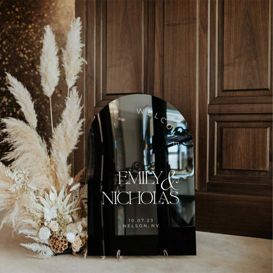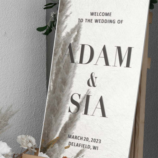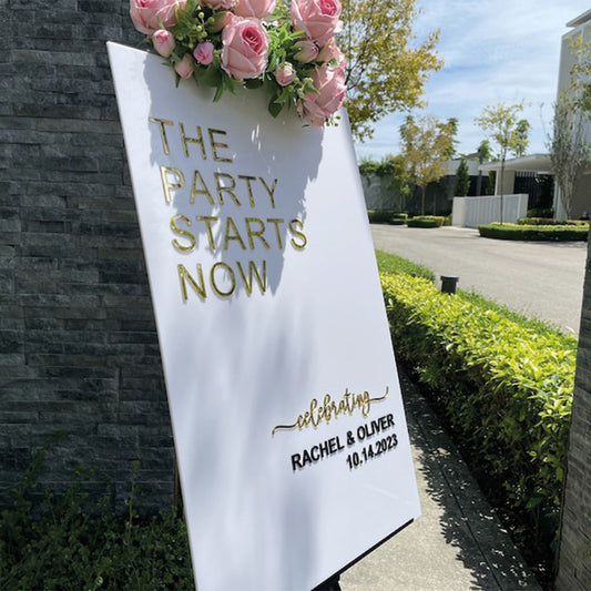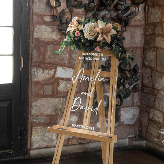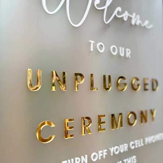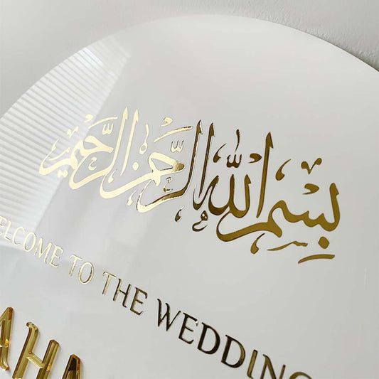 Enseigne rectangulaire acrylique mariage personnalisé en acrylique transparent avec 3D letter en différentes couleurs au Maroc.