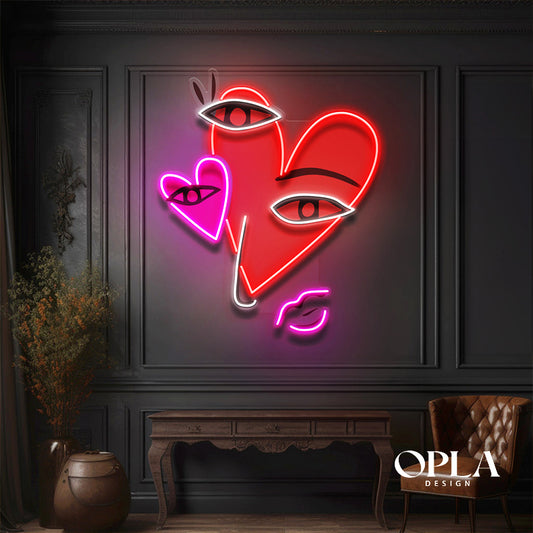 "Abstract Face With Hearts" Neon maroc - Neon Led au Maroc