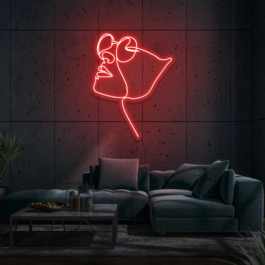 Enseigne au néon Fille avec des lunettes de cœur - Neon LED au Maroc